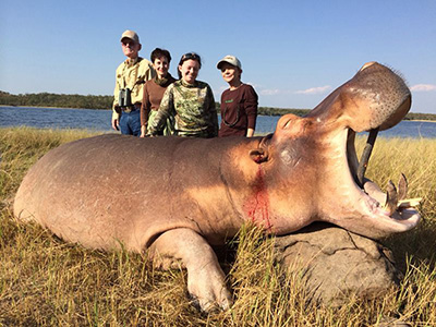 These American clients that hunted in Binga on Lake Kariba managed to get these 2 fantastic hippo bulls and this 4.4 meter croc during their hunt in June.