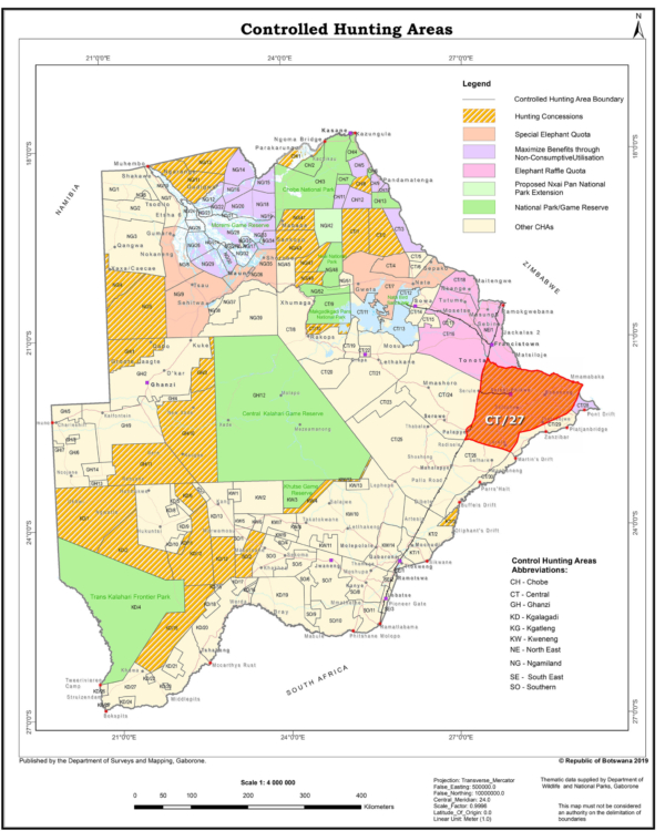 Our pricing for Botswana big game hunting is very competitive; in fact these are the best priced elephant hunts (with CITES) that I know of in Botswana. CT27 adjoins our ranch, www.lotsanesafaris.com, giving our clients a great family holiday and a plains game hunt option (including sable and roan) at our luxury lodge in addition to CT27 elephant and leopard hunts.