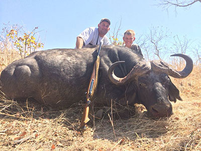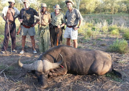 Take Aim Safaris has conducted over 150 big game hunts and has loads of references from happy hunters both local and abroad, you can book and hunt with us with 100% confidence. Here are some pictures of trophies taken since my last newsletter, this 4.2 meter Croc was shot at Binga and this dagga boy Buffalo was shot in Matetsi out of herd of 600+ buffalo, what an experience hunting a buffalo out of such a big herd is.