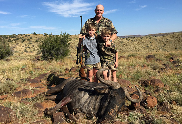 My son Hunter (age 10) shot this very nice wildebeest bull with a 300 WM that I was given by a client and friend from Spain, thanks Juan. My son and I bum crawled 100 meters to get into position for this one shot kill: